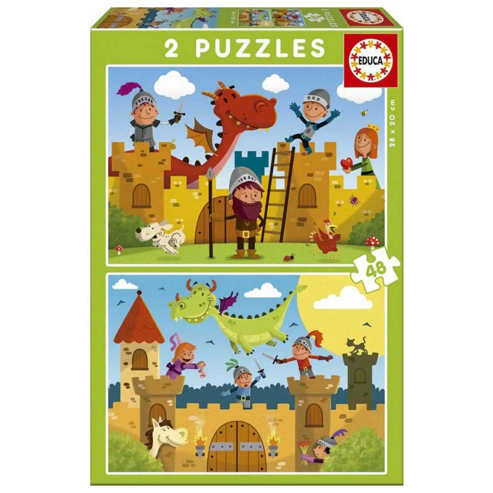 Puzzle Educa 2×48 Dragones y caballeros.