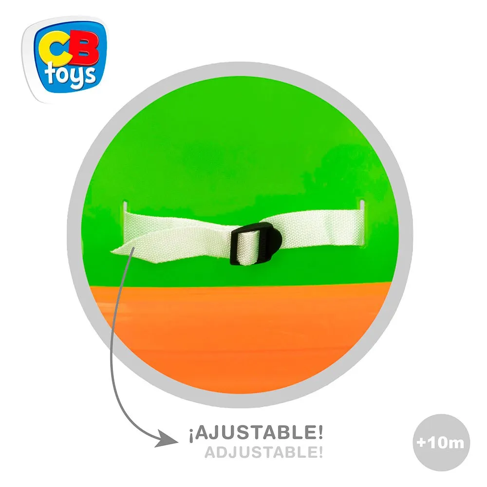 Incluye cinturón ajustable que se adapta a la medida del pequeño y cuerdas ajustables con anillas de acero.