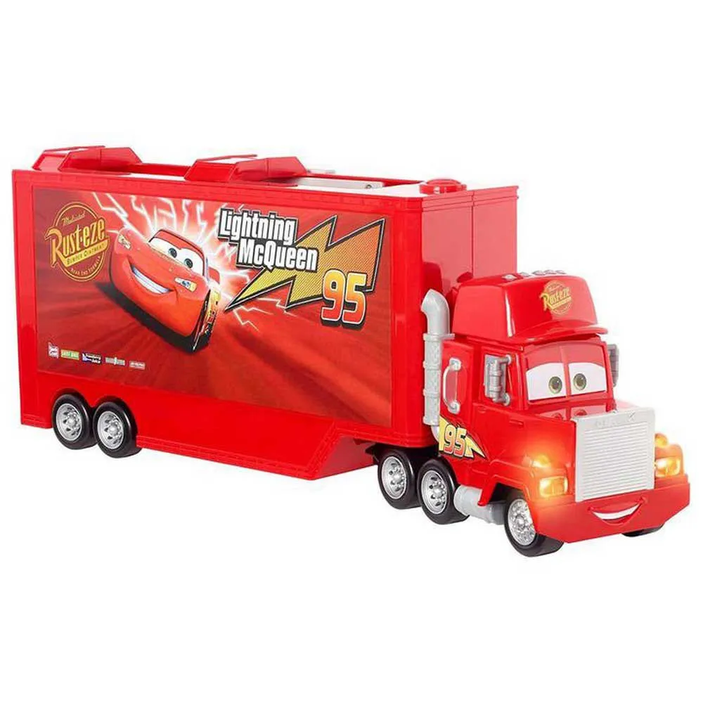 El famoso camión Mack de Rayo McQueen cobra vida con luces y sonidos. Mack hace sus sonidos característicos para recrear las escenas favoritas de la película Cars de Disney y Pixar. Adjunte cualquiera de los Talkers on Wheels al tráiler de Mack para desbloquear sonidos únicos. Con 17” de largo, Mack puede almacenar hasta dos vehículos parlantes sobre ruedas (se venden por separado). Los fanáticos de Cars de Disney y Pixar se divertirán mucho recreando los mejores momentos de la película e imaginando nuevas escenas con su camión de carreras favorito. Los colores y la decoración pueden diferir de los que se muestran.