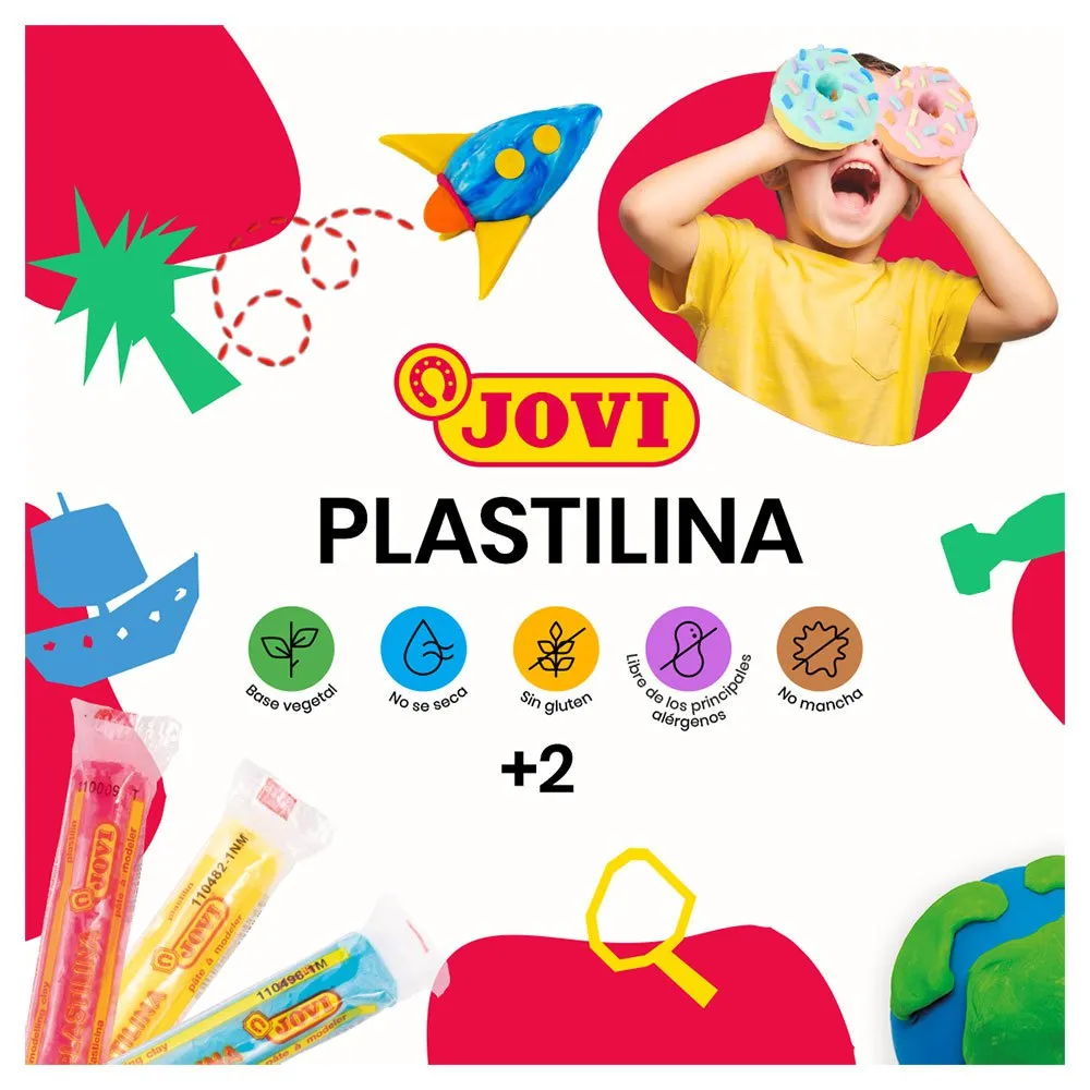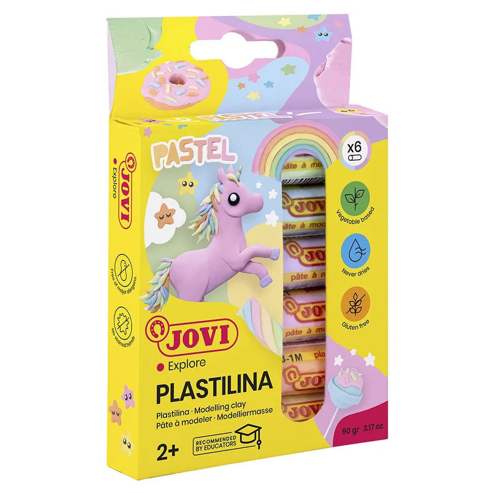 Jovi Pastel Estuche que contiene 6 barras de plastilina con forma redonda en 6 colores pastel surtidos.