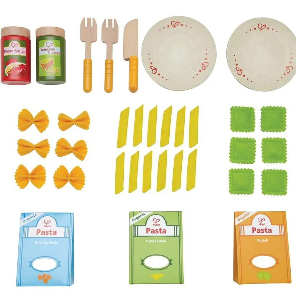 Aquí está todo lo que un pequeño cocinero o cocinera necesita para preparar y servir su comida favorita; la pasta, ¡y todo con las comiditas de juguete Pasta de HAPE! ¡Es un plato saludable y muy rico que satisfará el hambre de tu pequeño o pequeña! ¡Lo puedes preparar con las comiditas de juguete!CARACTERÍSTICAS:- Edad recomendada: A partir de 3Y+- Materiales: Madera: Schima. Plástico: PP.Textil: fieltro- Numero de piezas: 33 pieza(s).* ADVERTENCIA: PELIGRO DE ASFIXIA! Contiene piezas pequeñas que pueden ser tragadas. Peligro de estrangulamiento con el cable largo. No apto para menores de 3 años. Este juguete cumple con las regulaciones sobre seguridad EN71 y ASTM F963.