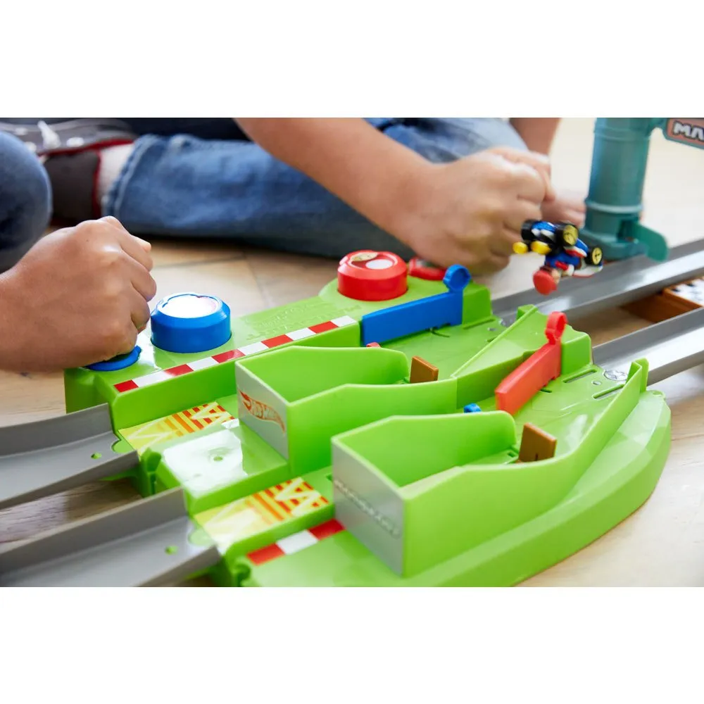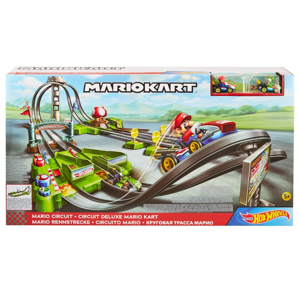 Hot Wheels® da vida a la acción más veloz del mundo de Mario Kart™ con la pista circuito de Mario definitiva, inspirada en los circuitos originales de tan aclamado videojuego.