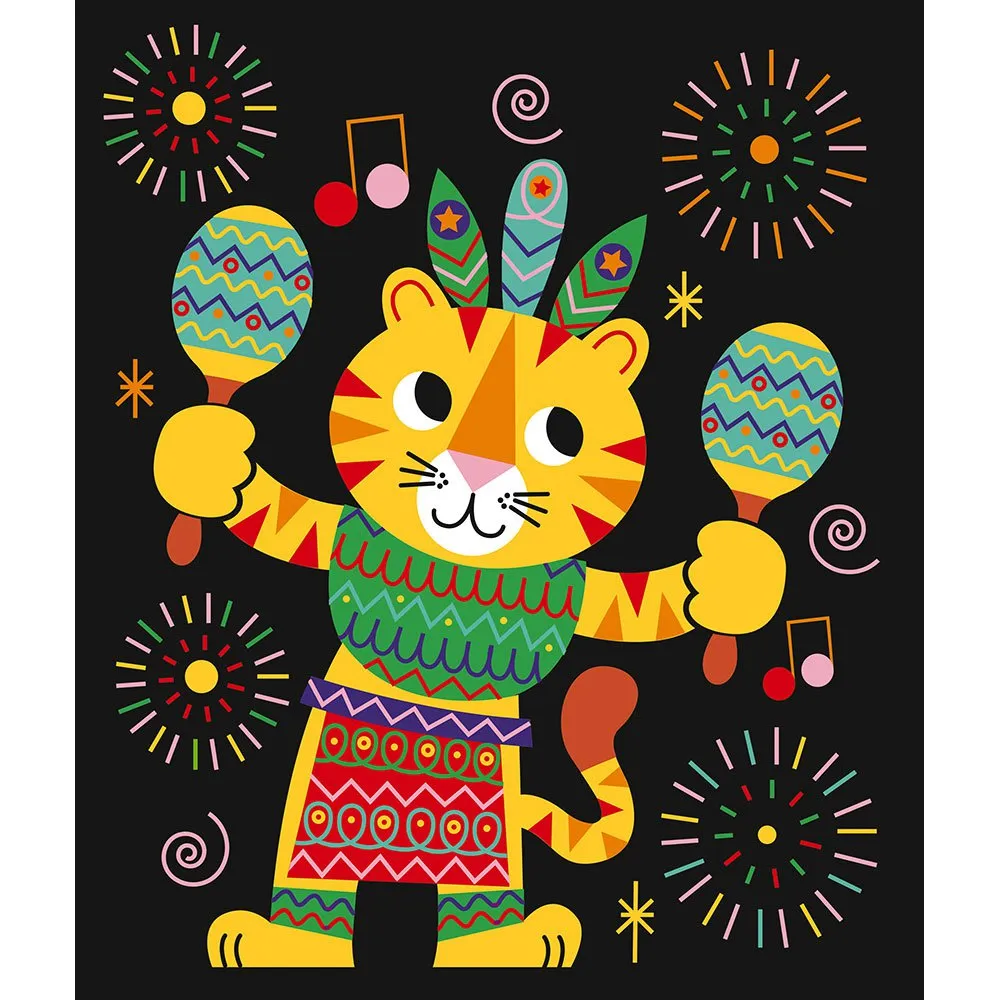 5 tarjetas para raspar, 1 herramienta de madera y 1 folleto de instrucciones con modelos.