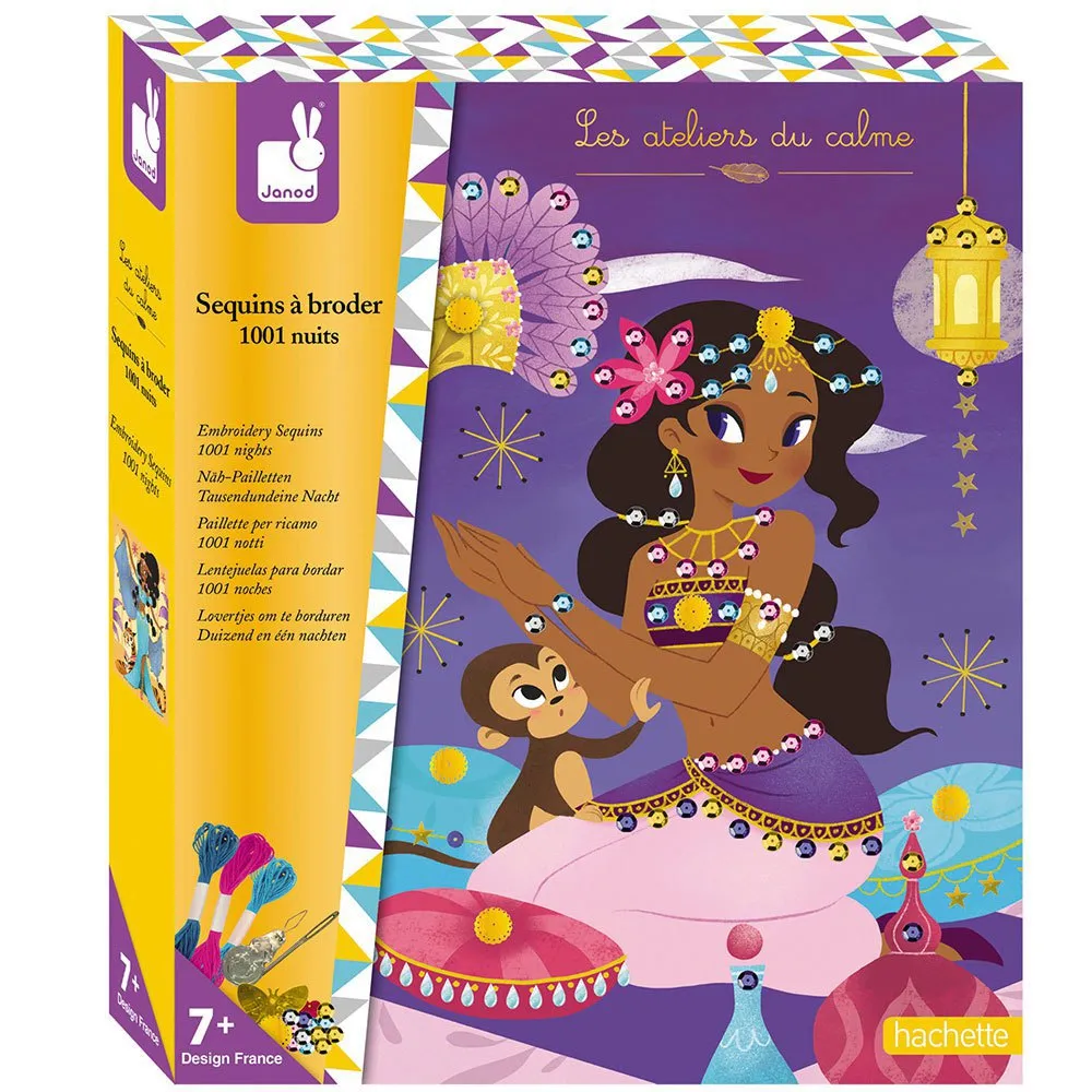 5 escenas para bordar con más de 150 lentejuelas (5 formas y 5 colores), 3 hilos de algodón de color, 1 aguja de plástico y 1 enhebrador Actividades creativas que traen calma, concentración y apaciguamiento.