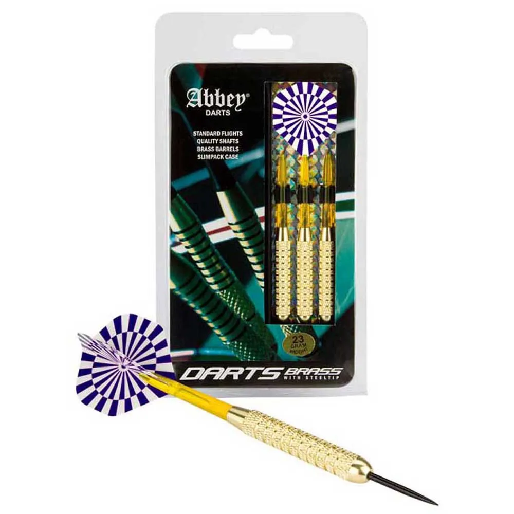 Juego de 3 dardos de latón de Abbey Darts con un juego adicional de plumas.