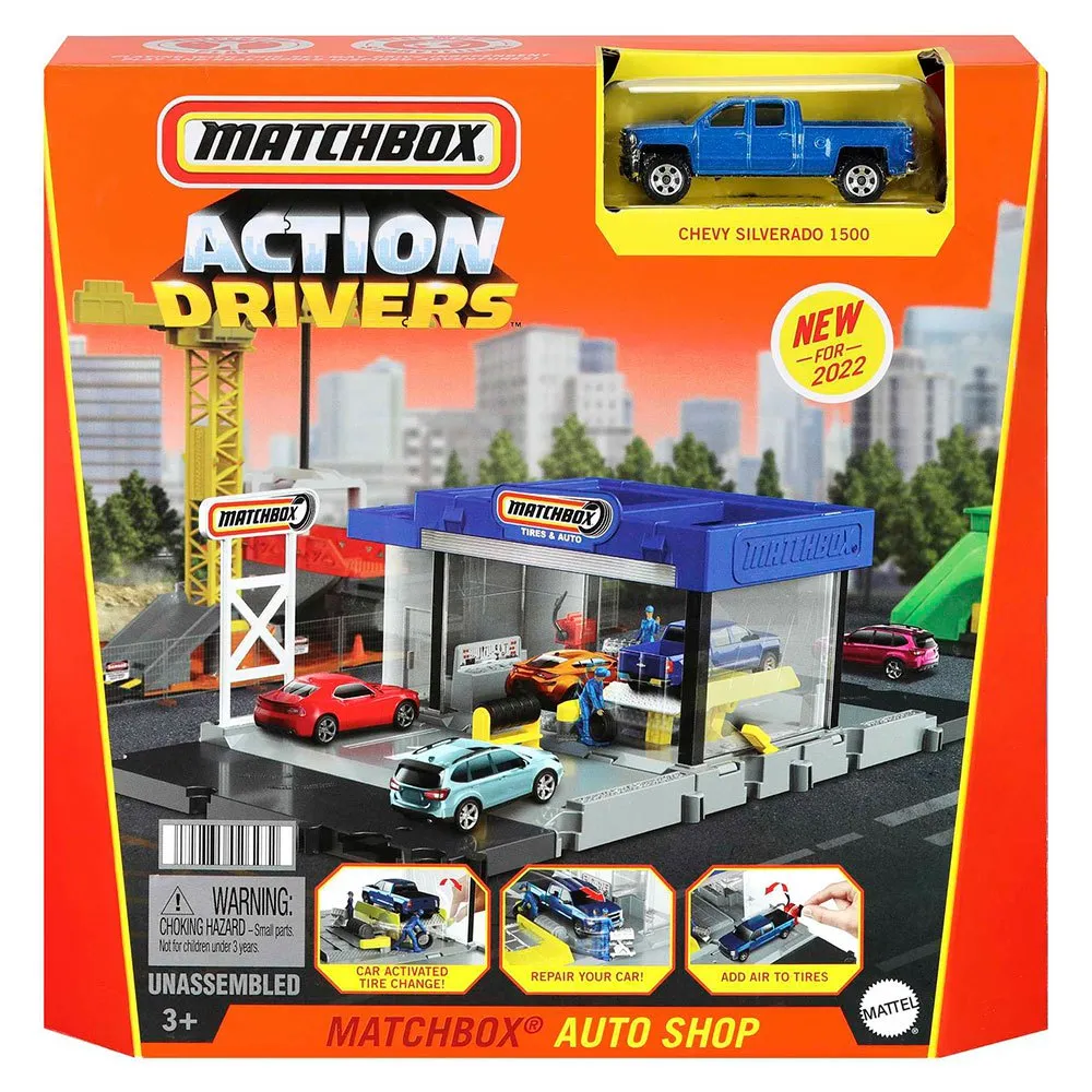 Los niños pueden hacer todo el mantenimiento de su automóvil en la estación de servicio Matchbox™ Action Drivers™. Las figuras móviles y las funciones activadas por Cool Kid invitan a infinitas posibilidades de narración en el mundo de Matchbox™.