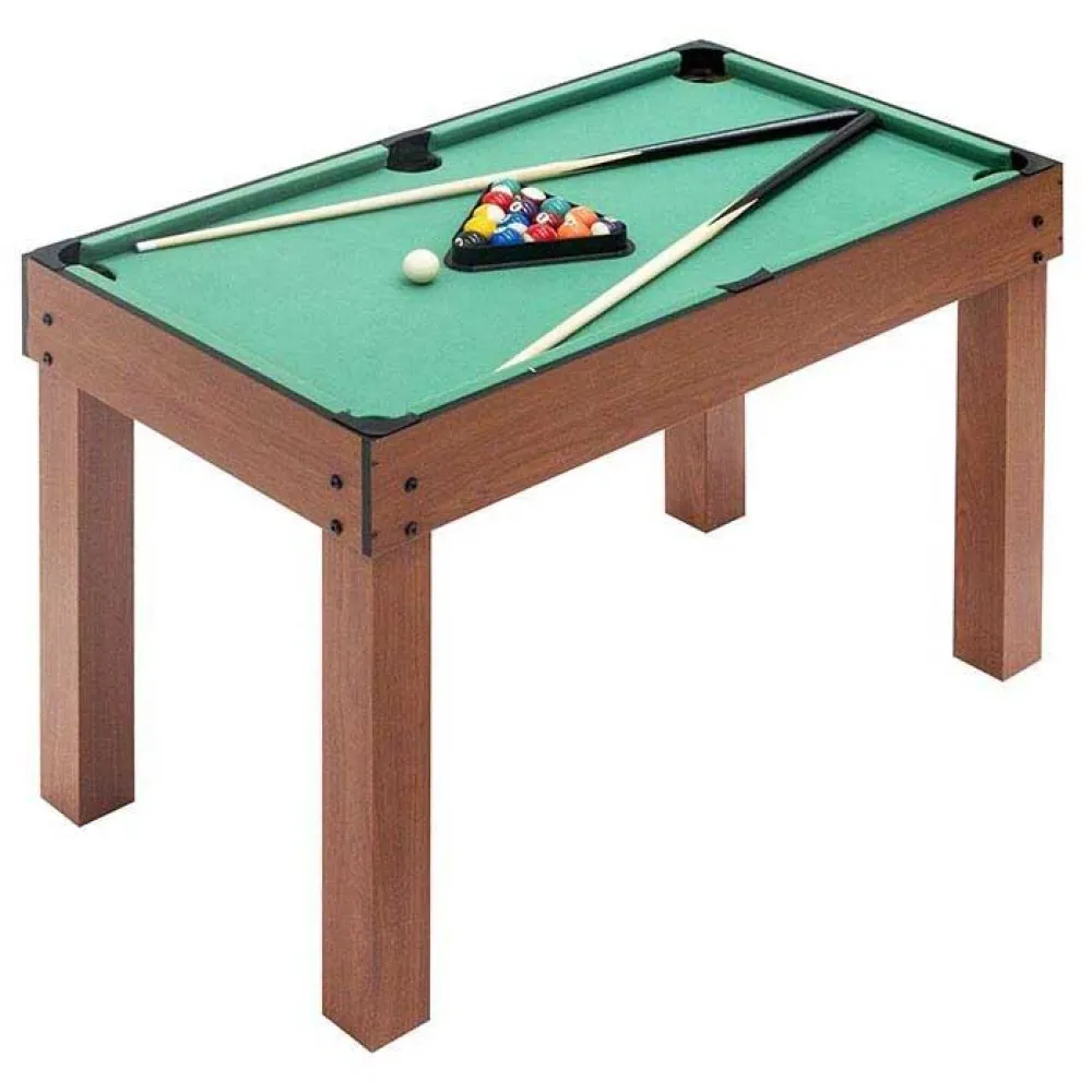 -El billar incluye todos los accesorios para empezar a jugar: 1 Juego de bolas 2 Tacos, 1 Triángulo, 1 Tiza