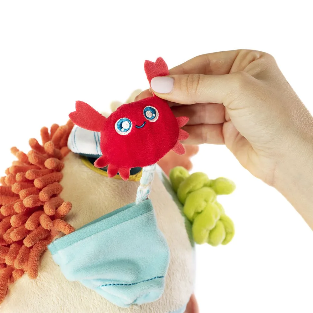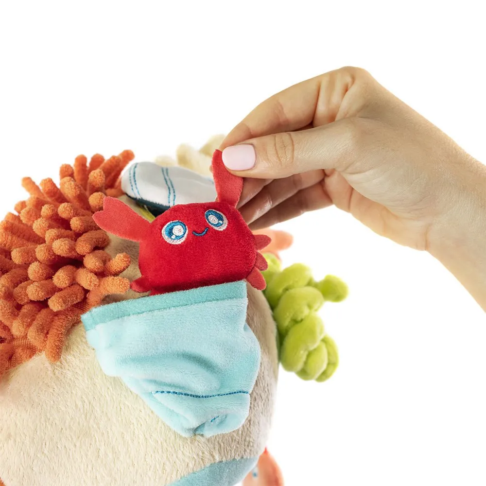 La estimulación sensorial es una de las cosas más importantes y divertidas para tu bebé. Se lo pasarán en grande mirando, tocando, mordiendo y escuchando este arrecife de coral blando. Les encantará explorar sus secretos y agitar su sonajero extraíble con forma de pulpo bebé. También ayudará a enseñarles sobre el fondo marino y su importancia desde una edad temprana.