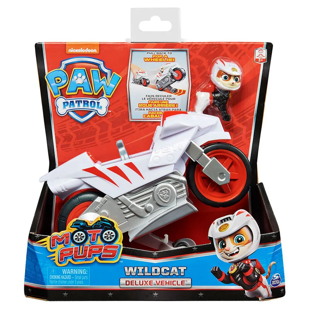 Con su chaqueta de motociclista y su casco, Wildcat (figura incluida) está listo para emocionantes aventuras como uno de los Moto Pups.