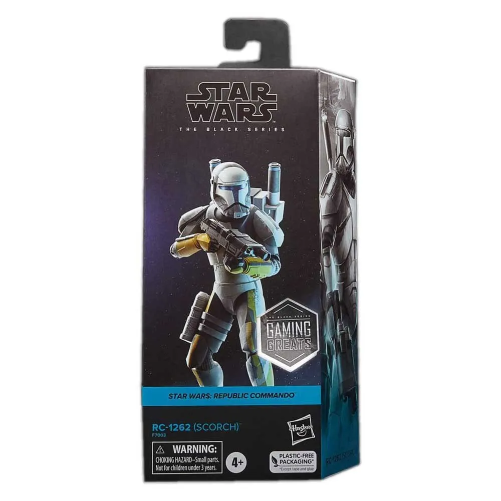 Figura articulada de la saga Star Wars, de unos 15 centímetros (6 pulgadas) con accesorios. Hasbro presenta dentro de su colección Black Series Gaming Greats RC-1262, aka Scorch, un soldado clon de élite que pertenece al ejército clon de la República Galáctica y es parte de Delta Squad, un escuadrón de comandos de la República Los fanáticos y coleccionistas de Star Wars pueden exhibir esta figura articulada de 6 pulgadas inspirada en ‘Star Wars: Republic