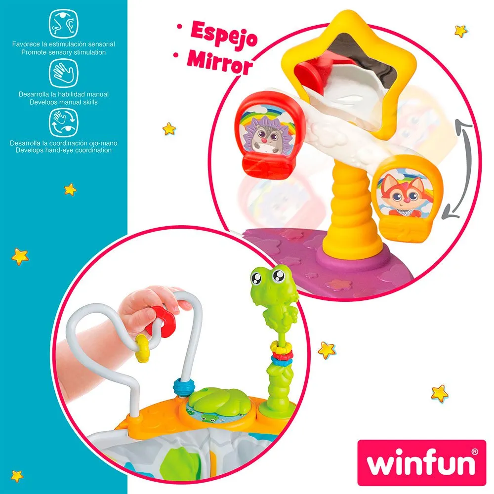 Centro de actividades con asiento o mesa de juego con una actividad más en centro multijuegos para bebés.